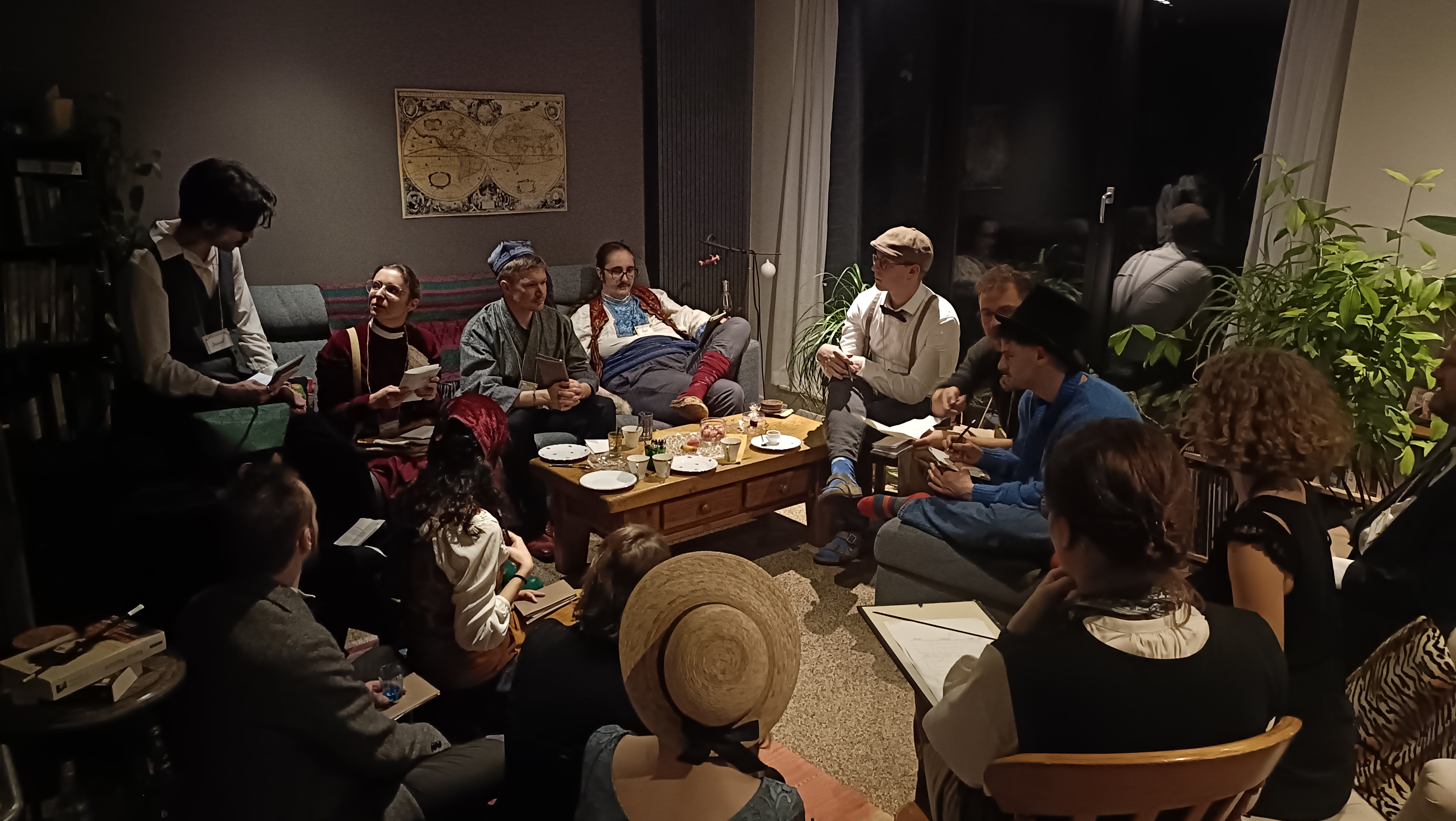 Chaque participant reçoit des informations sur le cadre de l’histoire, son personnage unique et ce qu’il ou elle sait sur la mort du diplomate.